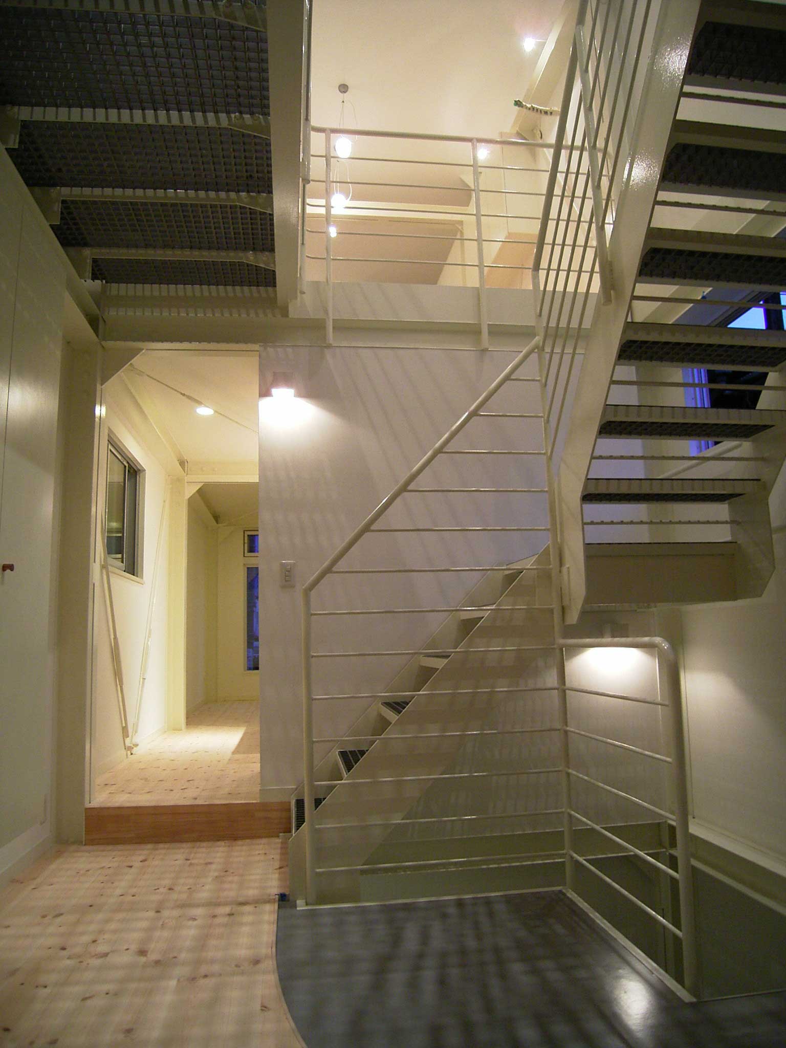 内部空間は、最大限広い内部空間を獲得するために、鉄骨の柱を表しにしています。