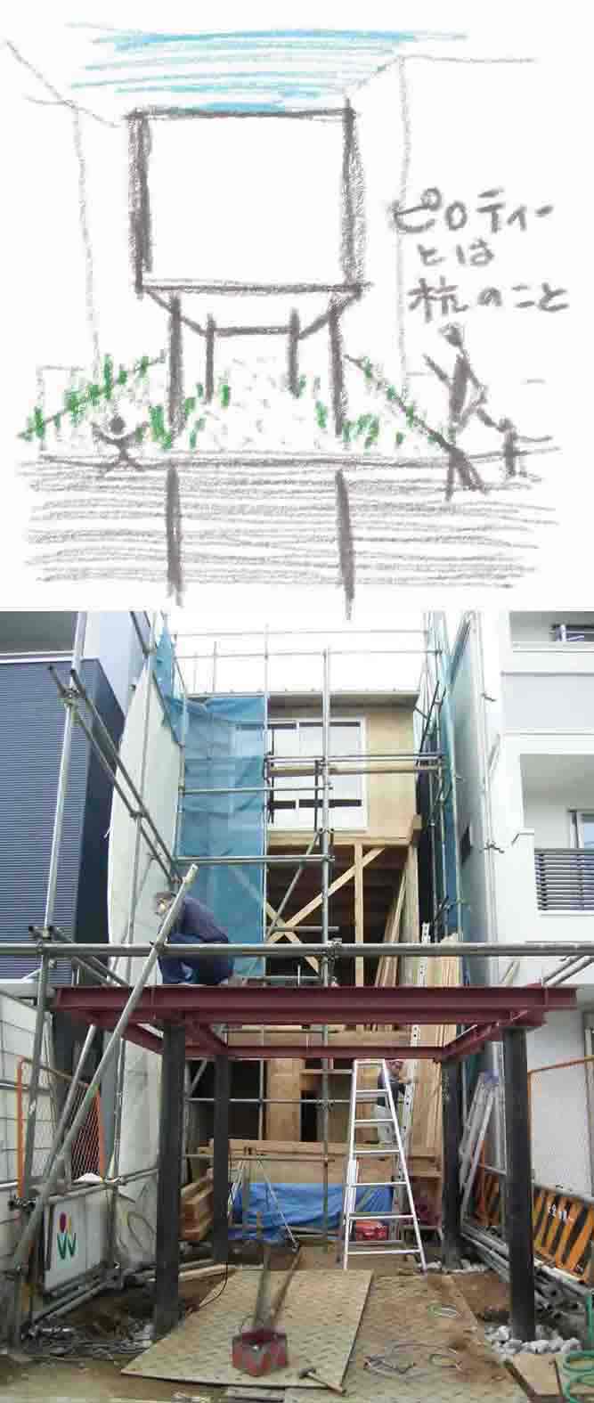 ここで何を目指しているかというと、「ホンモノのピロティーをつくる。」という事。