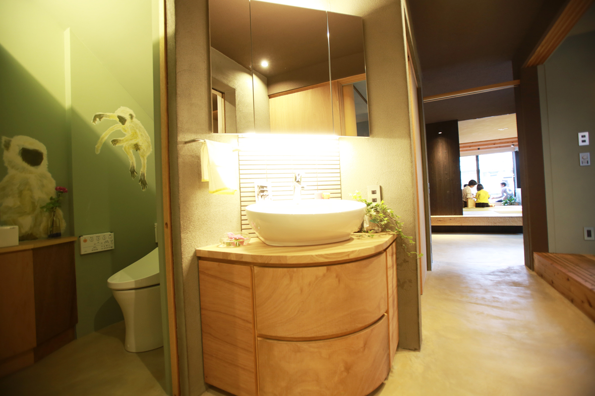 2階の寝室より。廊下のコーナーが、丸い洗面所になっています。