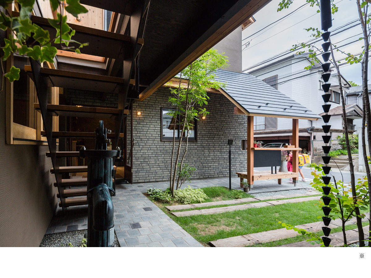 施工:大和田工務店 /ハタノワタル(和紙)/アトリエベガ(特注金物)/砂森山野草商店(造園)/ベイス(レンガタイル)