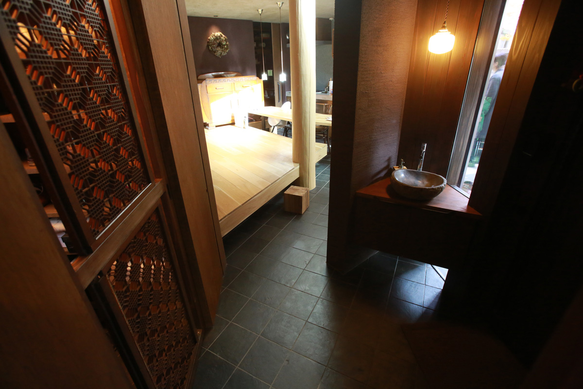 とても落ち着く部屋です。この部屋の和紙もハタノワタルさんの和紙ですが、