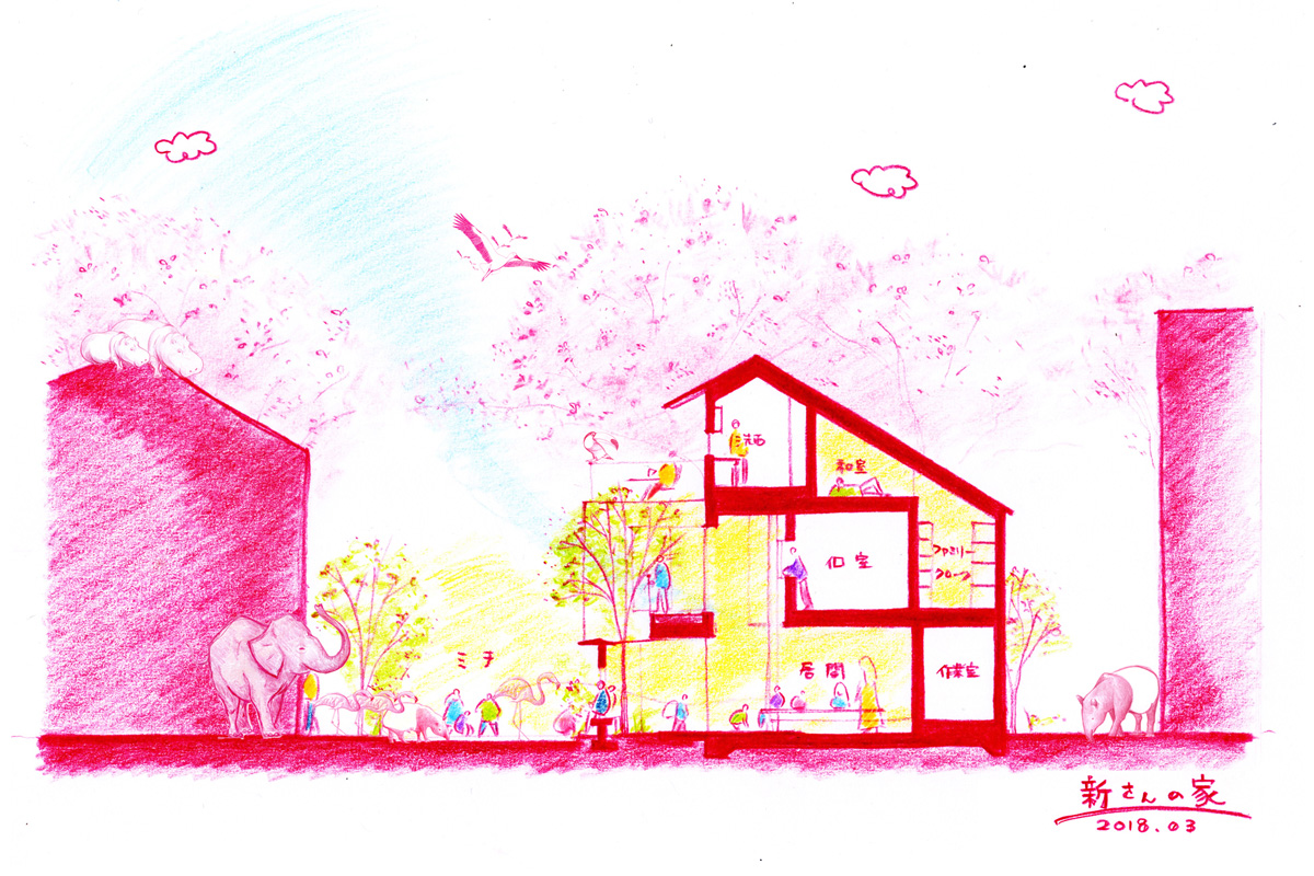 新さんの家は、その街の袋小路の突き当たりに計画した住宅である。