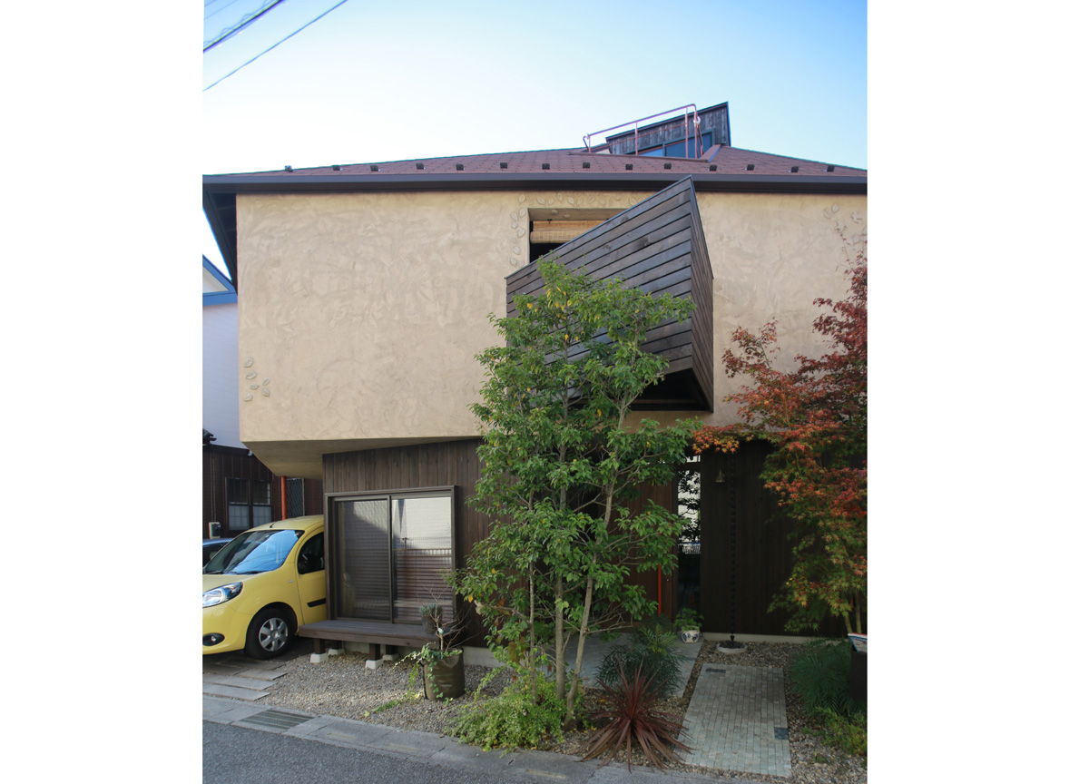 道路側から見た外観です。平面が多角形なので、