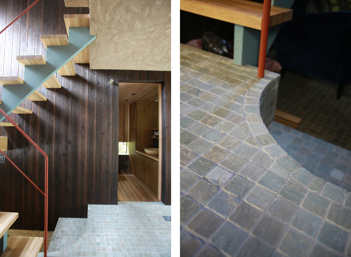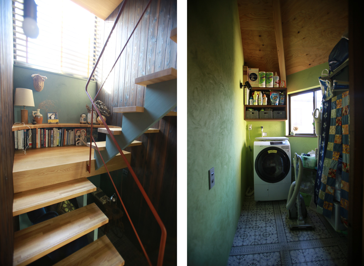 階段の踊り場は、ちょっとしたベンチになっています。