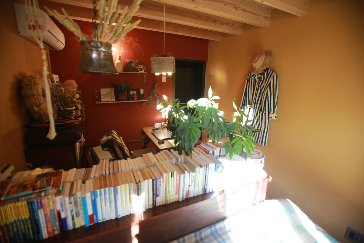 池田さんの部屋は、カラシ色と、朱色の2色構成としています。