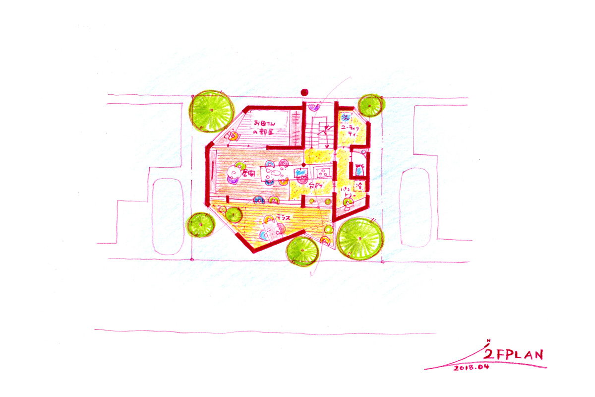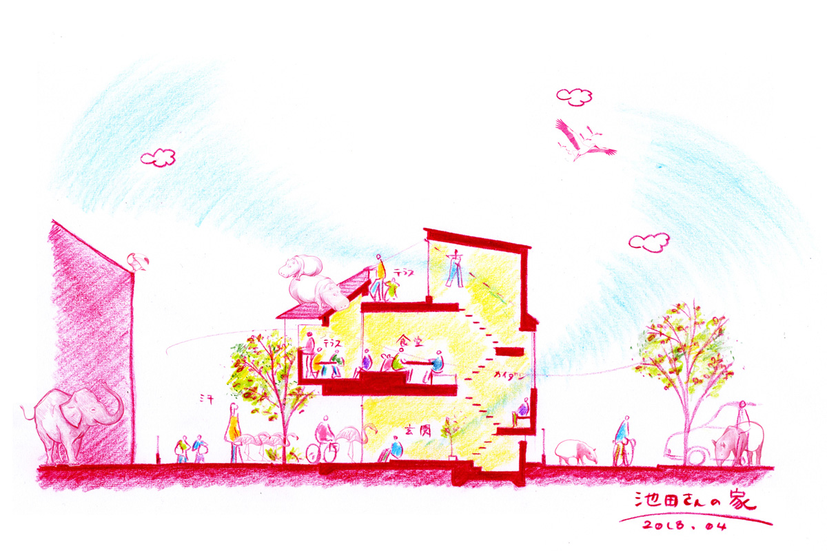そんな仲のいい池田さんご家族のために考えた、大樹の下の居場所のような住まい。
