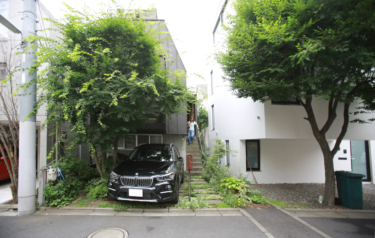 密集地なのですが、開口部を絞り、囲まれたテラスを家と街の間に作る事で、