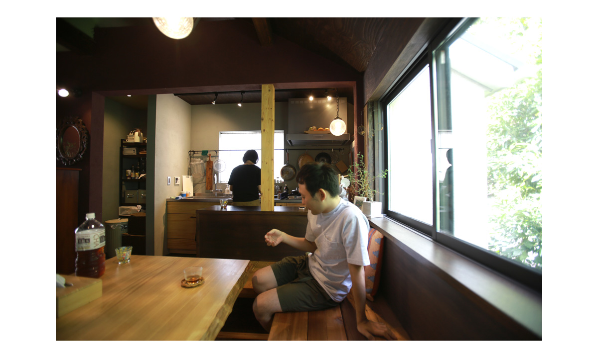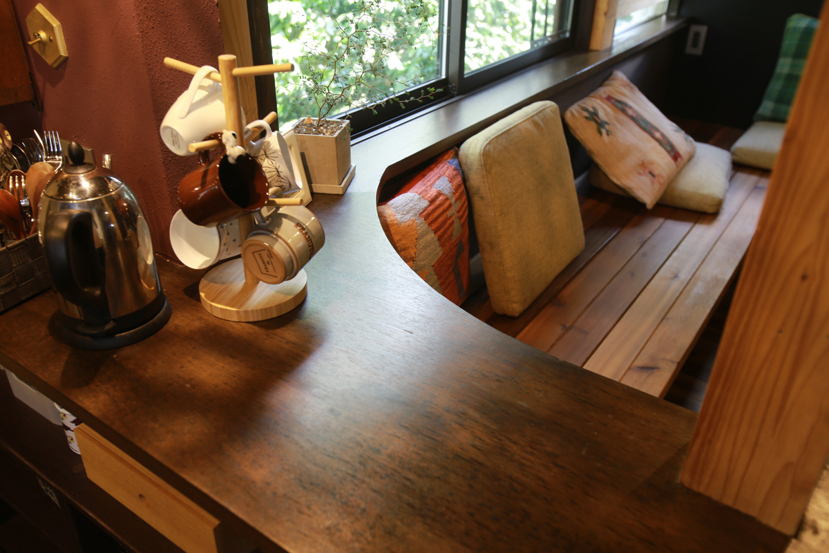 食堂は、緑道が見える一番気持ちのいい場所に作りつけました。