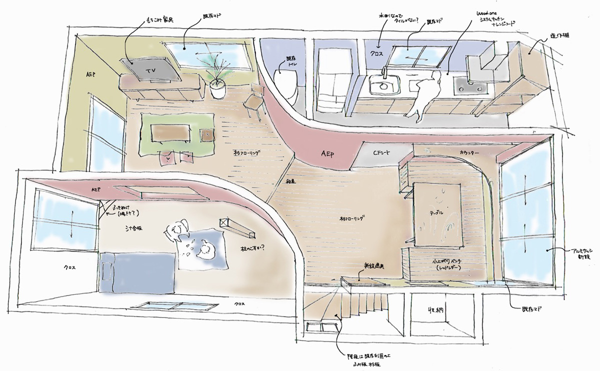 東京都小平市 / 住宅 / 2階( 木造 )リノベーション / 敷地面積:120u / 建築面積:47u / 延べ床面積:93u