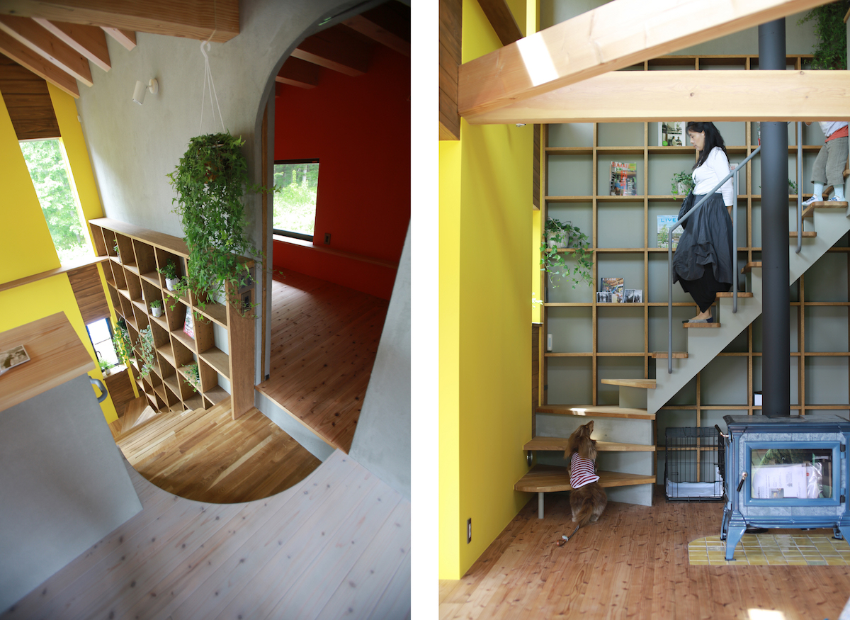 二階のリビング。床の穴も、猫の移動用なのです。