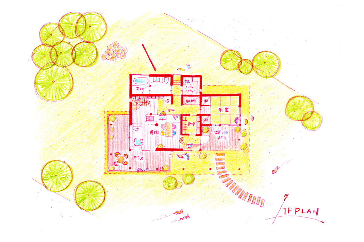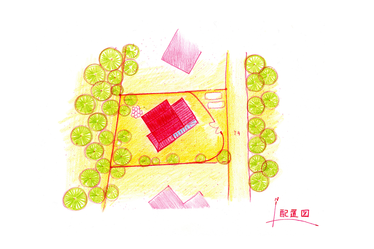 シンプルなプランですが、半外部の深い下屋根をぐるりと回す事で、