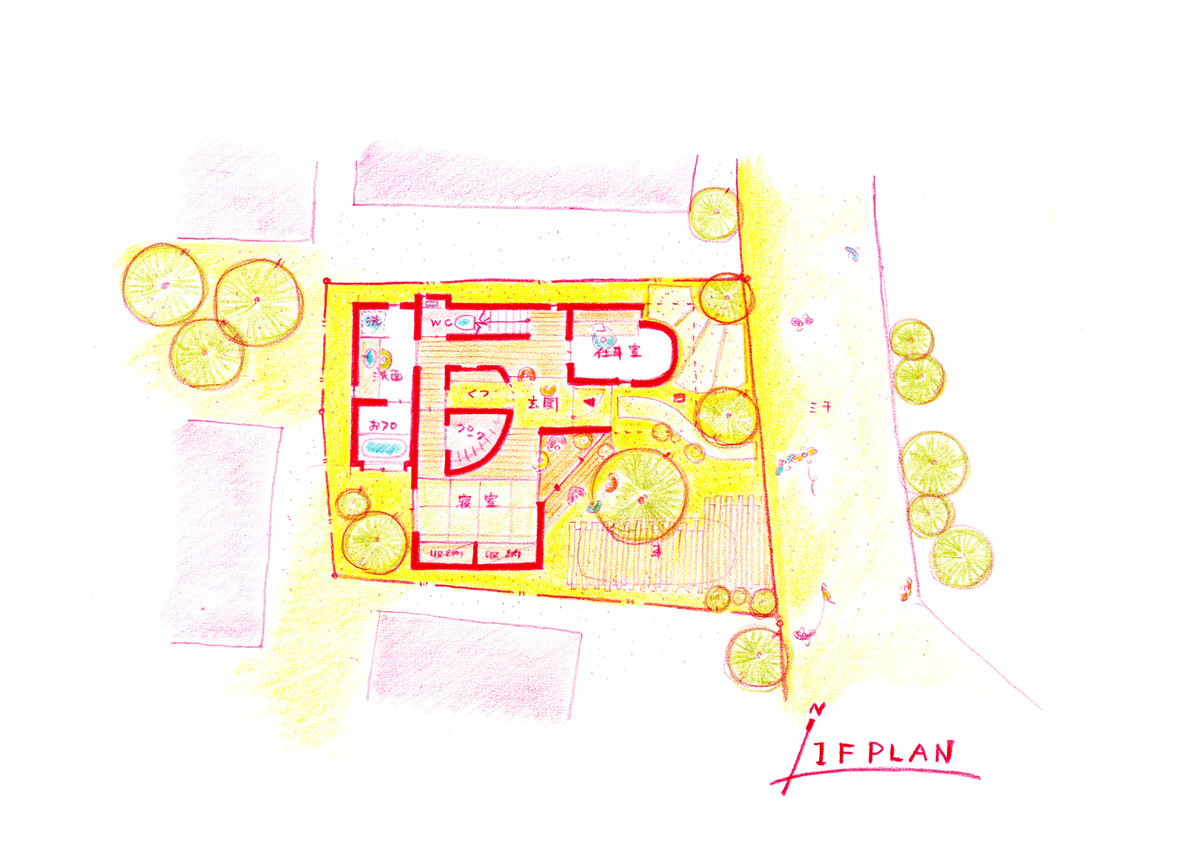 敷地の中だけではなく、街中の木々とものんびりと連続していくような家にしたいと思いました。
