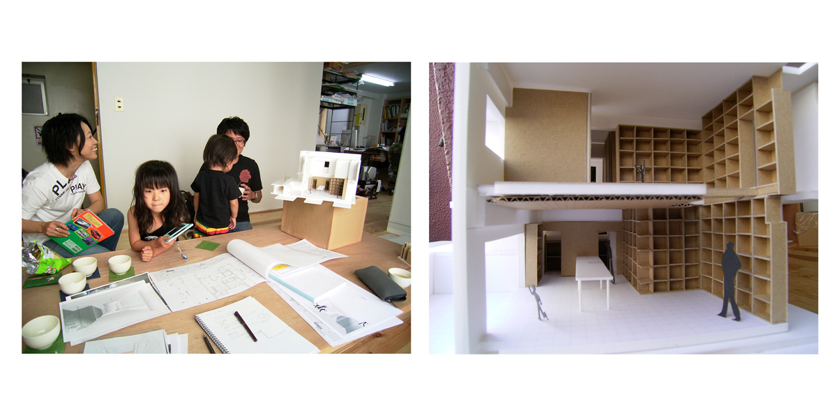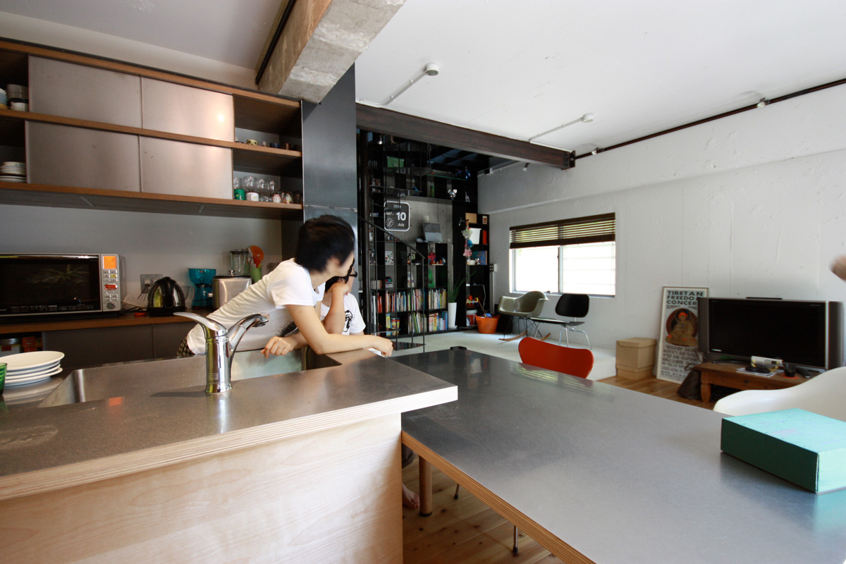 マンションの上下階の2部屋を繋げて4人家族の住まいにするリノベーション。