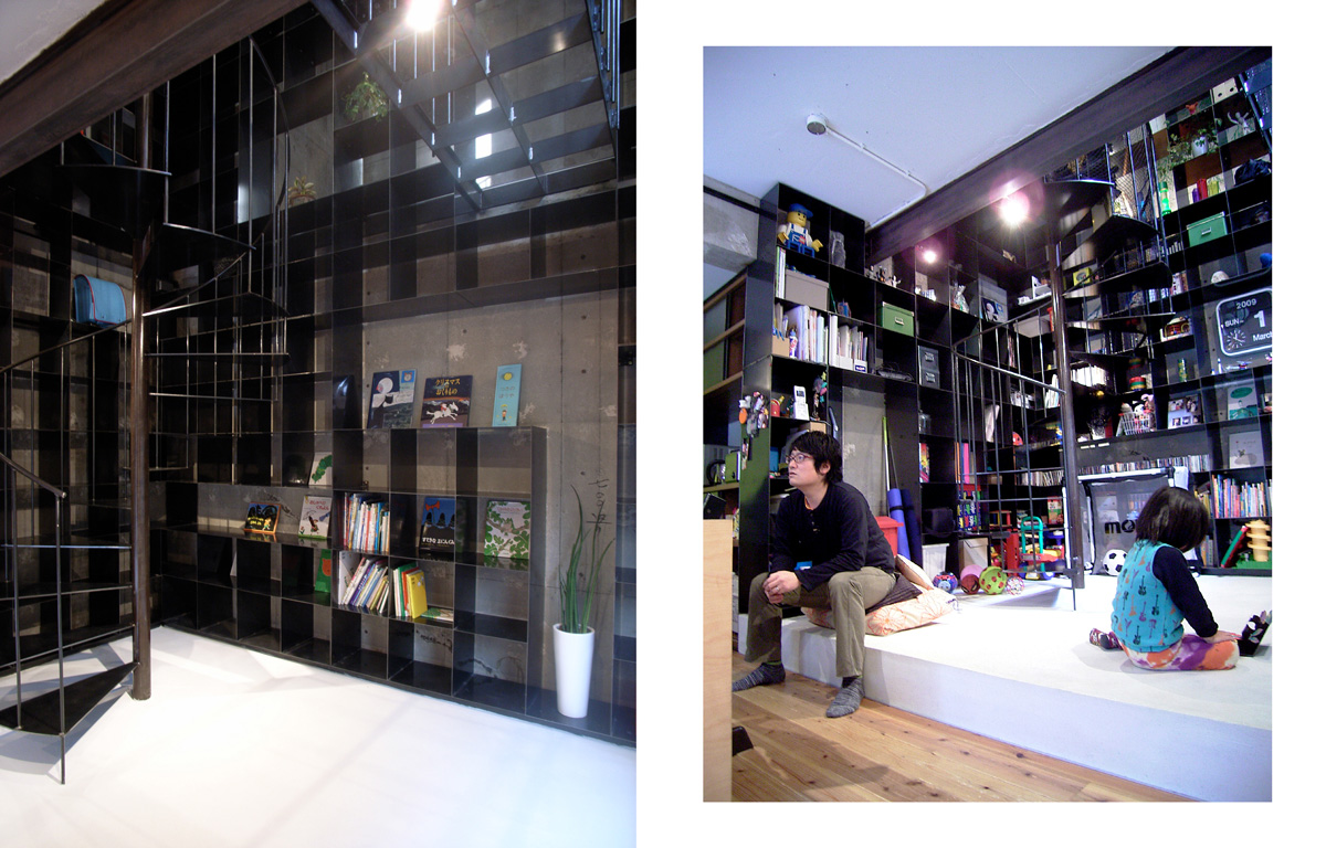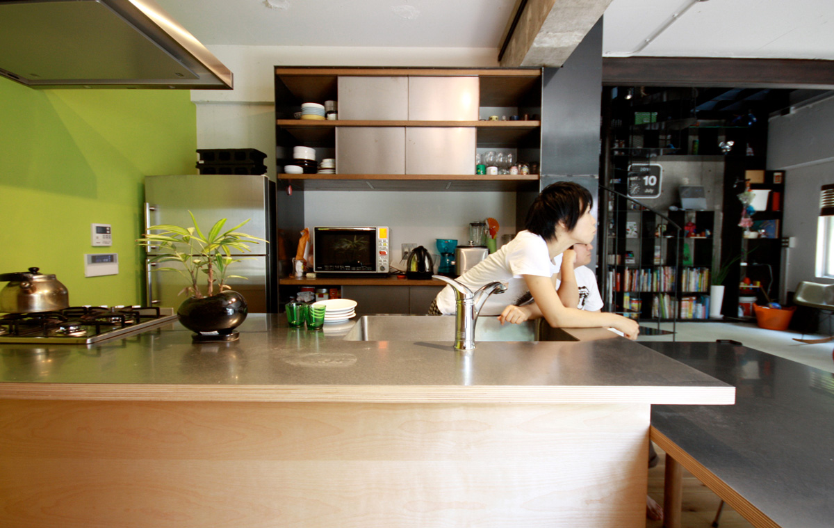 とご提案させていただきました。オープンな収納棚は2.3oの薄い鉄板で製作しています。