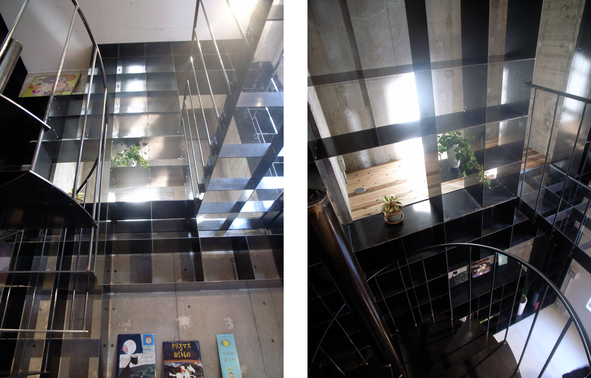 2階の床を一部壊して補強し、上下の動線としていますが、階段だけではもったいないので