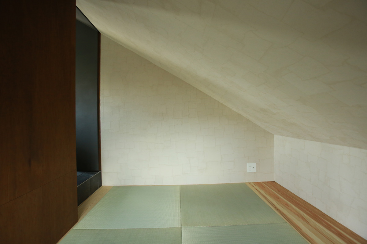とても落ち着く部屋です。この部屋の和紙もハタノワタルさんの和紙ですが、