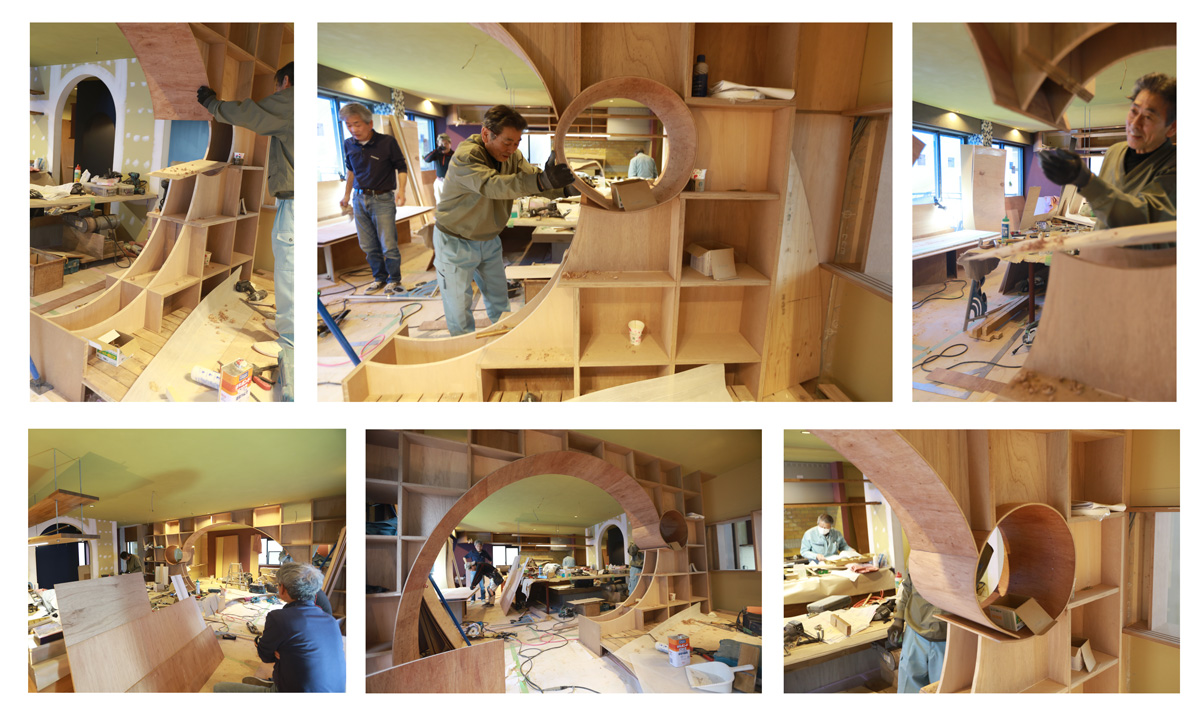 特徴的なヘンテコな曲面を描く本棚は、実は最初からではありません。