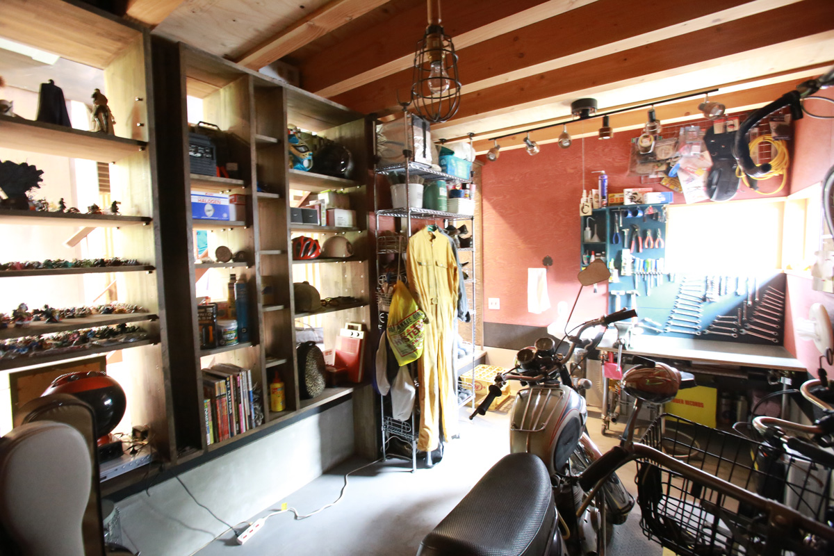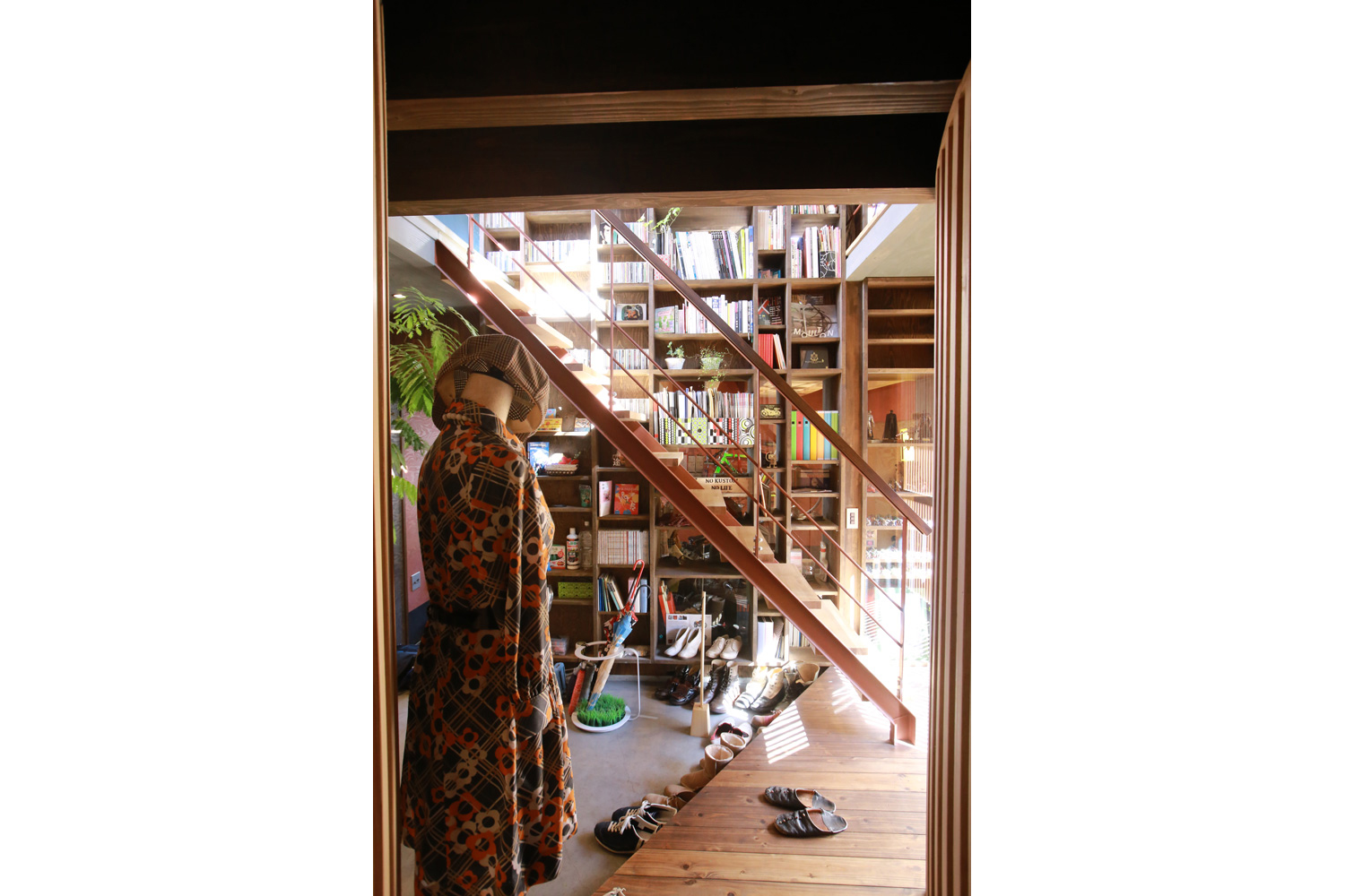 1階は、玄関入ると右は、洋服屋さん、左はバイク屋さん。